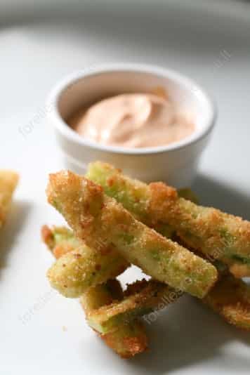 Šparagus plonai nulupti, minutę ar dvi apvirti, supjaustyti vienodo dydžio gabaliukais (storesnius ir pusiau). Nedideliame inde išplakti kiaušinius su 2 v.š. vandens bei žaliosios citrinos sultimis. Lėkštėje išmaišyti miltus su druska ir juodaisiais pipirais. Į kitą lėkštelę supilti džiūvėsėlius. Šparagus apvolioti miltuose, nukračius jų perteklių merkti į kiaušinių plakinį ir apvolioti džiūvėsėliuose. Kepti gerai įkaitintame aliejuje, kol gražiai paruduos. Riebalų perteklių nusausinti ant servetėles ir patiekti su padažu.