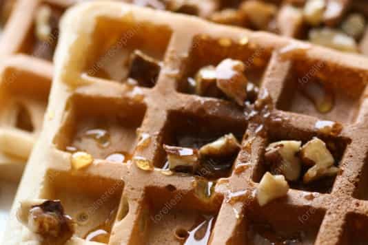 Jogurtiniai vafliai su pekanais ir klevų sirupu
