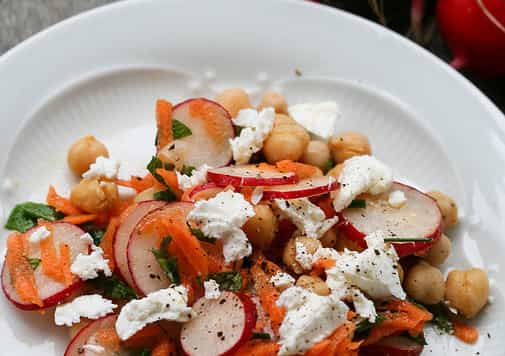 Sočios ir skanios salotos su ridikėliais ir avinžirniais, pagardintos malta kalendra bei…