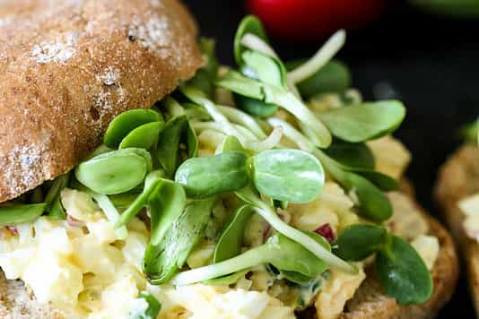 Sumuštiniai su kiaušinių salotomis bei daigintiniais
