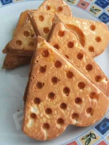 Neatsimenu kada jau buvau bekepus vaflių, vis ruošiuosi nusipirkti vaflinę, bet nei viena neįtinka. Taigi, atradus blynų keptuvę ant dujinės, išsikepėm vaflinių blynų. Su klevų sirupu – skonis fantastiškas.