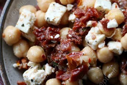 Avinžirnių salotos su feta ir džiovintais pomidorais