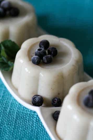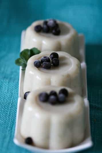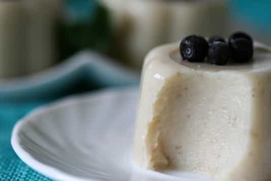 Visus ingredientus, išskyrus citrinos sultis, susmulkinti iki vientisos masės smulkintuvu ar kombainu. Kaitinti pastoviai maišant kol užvirs, virti 2-3 minutes ar ilgiau, kol sutirštės. Iš pradžių maišant atrodo, jog sušoka į gabaliukus, bet toliau maišant, masė tampa vientisa. Įmaišyti citrinos sultis, supilstyti į formeles, kai atvės sudėti į šaldytuvą ir atšaldyti. Patiekti su uogomis, jų padažu ar grietinėle.
