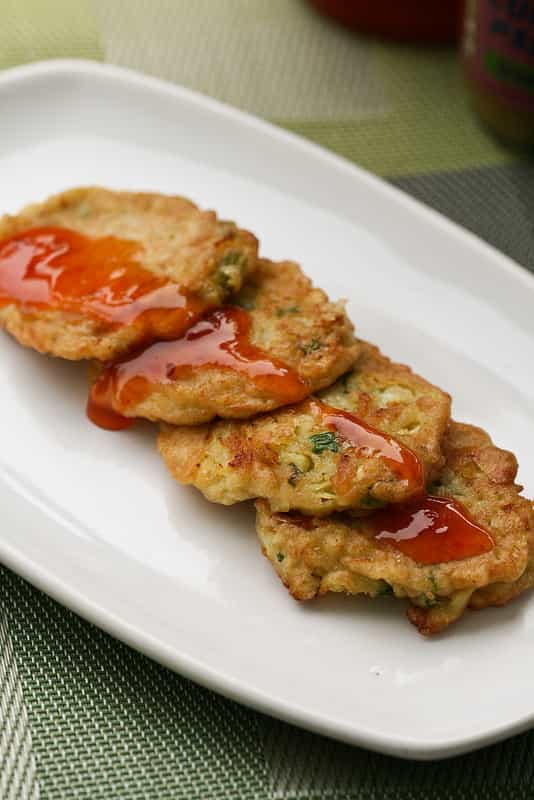 Kadangi cukinijų beveik visada rasi šaldytuve, tai ekstra tinginio atveju kepu kepsnelius su ja. Kiekvieną kartą keičiant ingredientus  galima gauti skirting skonio ir niekada nepabosta jų valgyti. Šįkart cukinijų kepsneliai pagardinti žaliojo kario pasta ir valgomi su saldžiaaštriu čili padažu. Šiek tiek egzotikos.