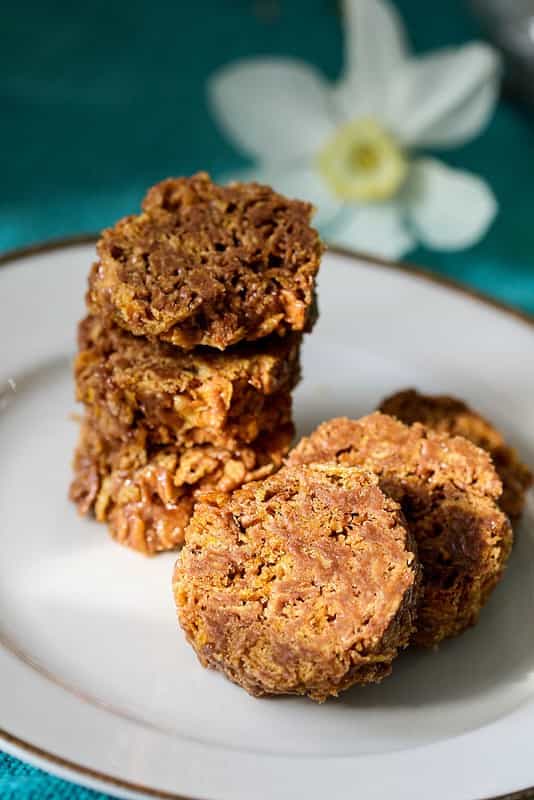 Tik trys ingredientai, kelios minutės darbo, pusvalandis šaldymo ir kukurūzų dribsnių skanėstas paruoštas. Lengviau nebūna.