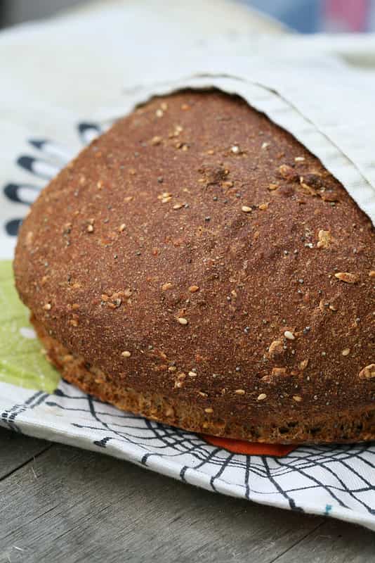 Duonos su saulėgrąžomis, kmynais, grūdais tapo kasdienybe, todėl norėjosi pabandyti kažką naujo ir netikėto. Seniai buvau nusižiūrėjus duonos su aguonomis receptą, bet kai tik reikėdavo kepti, nugalėdavo klasika. Nors receptas yra su mielėmis, aš vietoj jų naudojau raugą, aguonų kiekį sumažinau perpus. Duonos skonis tikrai įdomus, pripratus prie aguonų saldžiuose kepiniuose, čia jos tikrai yra netikėtos, bet yra kas ir nesuprato su kuo ši duona.