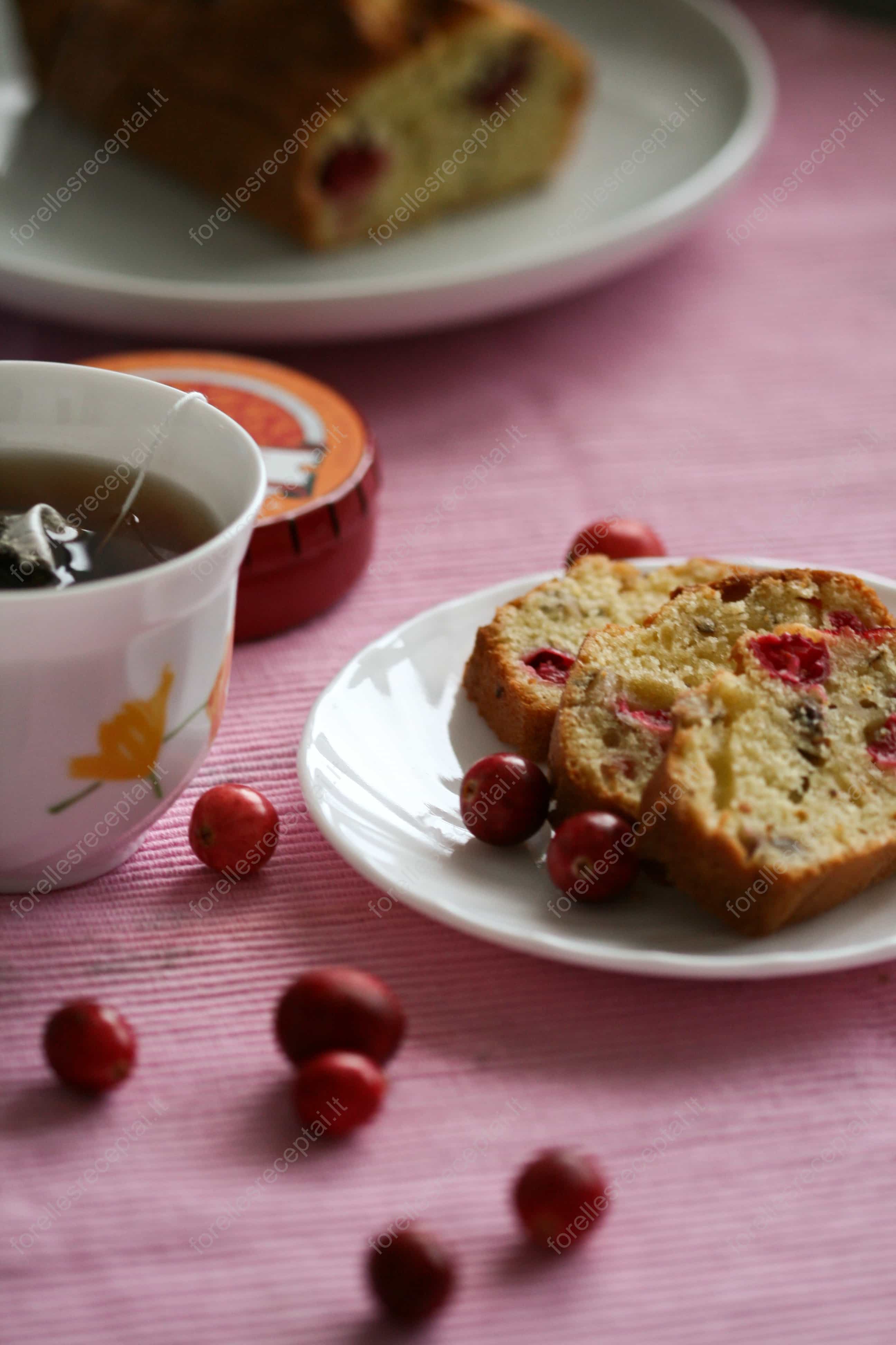 Ištirpintą sviestą išplakti su cukrumi, kol ištirps. Įmušti  po vieną kiaušinius, supilti jogurtą ar grietinę, sultis, tarkuotą žievelę ir gerai išplakti. Miltus sumaišyti su kepimo milteliais, soda, druska. Supilti į skystus produktus ir trumpai pamaišyti. Suberti riešutus, spanguolės, atsargiai išmaišyti ir sukrėsti į pailgą kepimo formą. Kepti įkaitintoje 1800 C orkaitėje 45-50 minutes (jeigu tešla kepama dviejuose mažesnėse formose, užtenka 35-40 minučių).