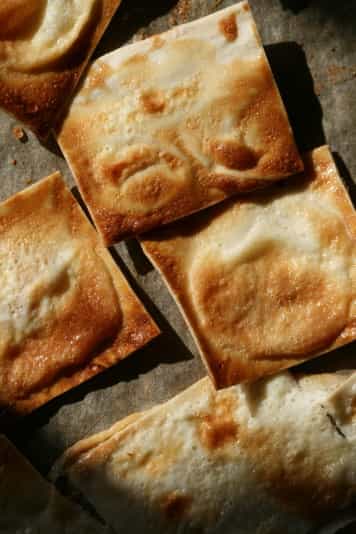 Lavašo traškučiai buvo išbandyti tik pasirodžius Elžbietos įrašui, bet nufotografuoti tik visai neseniai. Majonezas man pasirodė nederantis su saldžiais traškučiais, o ir ne visada jo turiu, todėl kaskart kepdama vis eksperimentuodavau. Skaniausia variantai yra su kondensuotu pienu, dėl kurio susidaro karamelinis sluoksnelis, ir su klevų sirupu/auksaspalviu sirupu bei cinamonu. Tikrai skanu, paprasta ir greita.