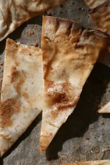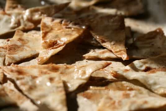 Lavašą plonai aptepti sirupu/medumi, pabarstyti cinamonu. Sukarpyti ar supjaustyti norimo dydžio gabalėliais ir kepti 200 C temperatūroje kelias minutes.