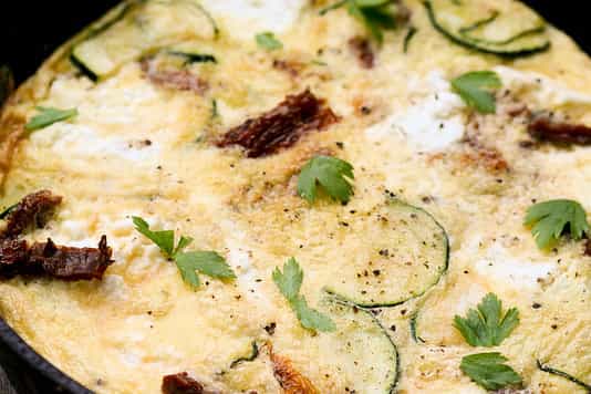 Fritata su cukinijomis, rikota ir saulėje džiovintais pomidorais