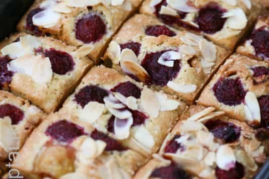 Pyragėliai su avietėmis, baltuoju šokoladu bei migdolais