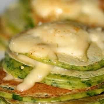 Vasariškai žalios spalvos špinatų blynai, susluoksniuoti su ementalio ir mozarelos sūriais. Paprasta,…